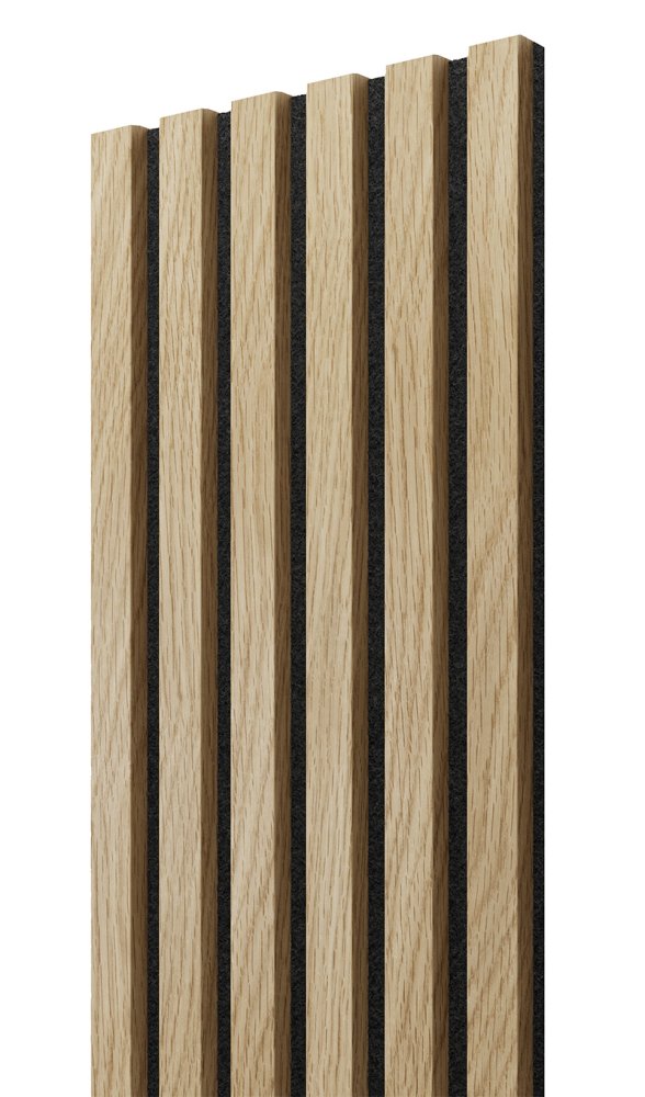 Akustický panel je tvořen vysoce kvalitní plstí a jednotlivými lamelami s jádrem z MDF a 3D Finish fóliovaným povrchem s vysokou životností. Plsť má skvělé akustické vlastnosti, výrazně zvýší zvukovou pohodu v místnosti. Kresba dřeva je nezaměnitelná a bude ozdobou v každém interiéru. Produkt je velmi oblíbeným prvkem každého architekta a interiérového designéra. Montáž panelu je velice snadná a zvládnete ji hravě svépomocí.