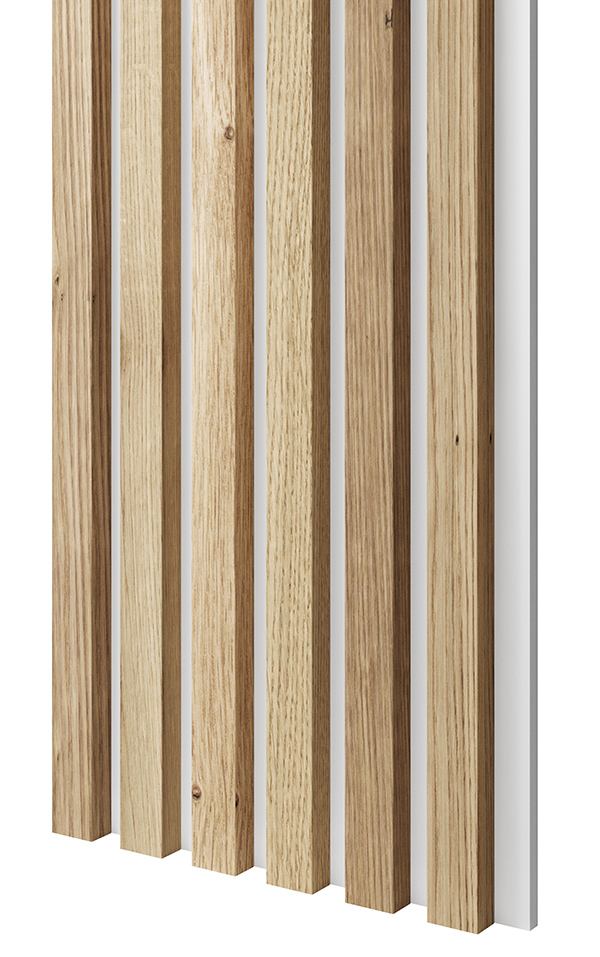 Akustický panel s podkladem z bílé matné MDF desky tl. 6 mm a úzké lamely o velikosti 30x18 mm. Panely skvěle vypadají na stěně a stropu a vynikají výrazným a nezaměnitelným 3D efektem, který zároveň zlepšuje akustiku v místnosti - eliminuje ozvěnu a dozvuk. Pro výraznější zlepšení akustiky v místnosti doporučujeme akustické panely na plsti (filcu) z naší nabídky. Lamely s dubovou dýhou jsou hřejivé na dotek a jsou chráněny kvalitním olejem. Kresba dřeva je nezaměnitelná a bude ozdobou v každém interiéru. Montáž panelů je velmi snadná a zvládnete ji svépomocí. Akustický panel je dostupný v 8 odstínech. Nabízíme také panely s černou MDF deskou.