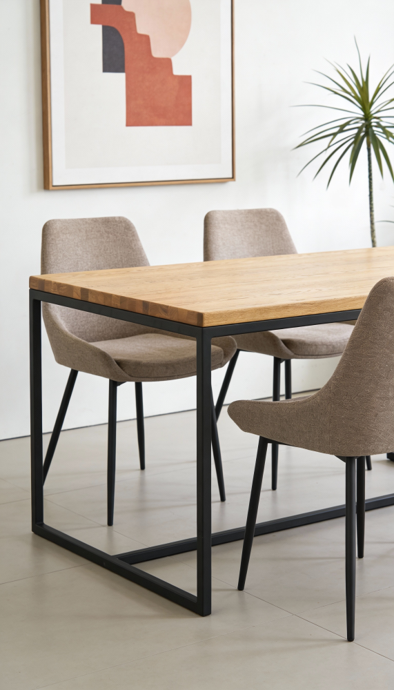 Jídelní stůl Ela je perfektní kousek z naší dílny. Vyniká svým minimalistickým designem, kombinace dubového masivního dřeva a kovových podnoží je nadčasová a hodí se téměř ke všemu. Více