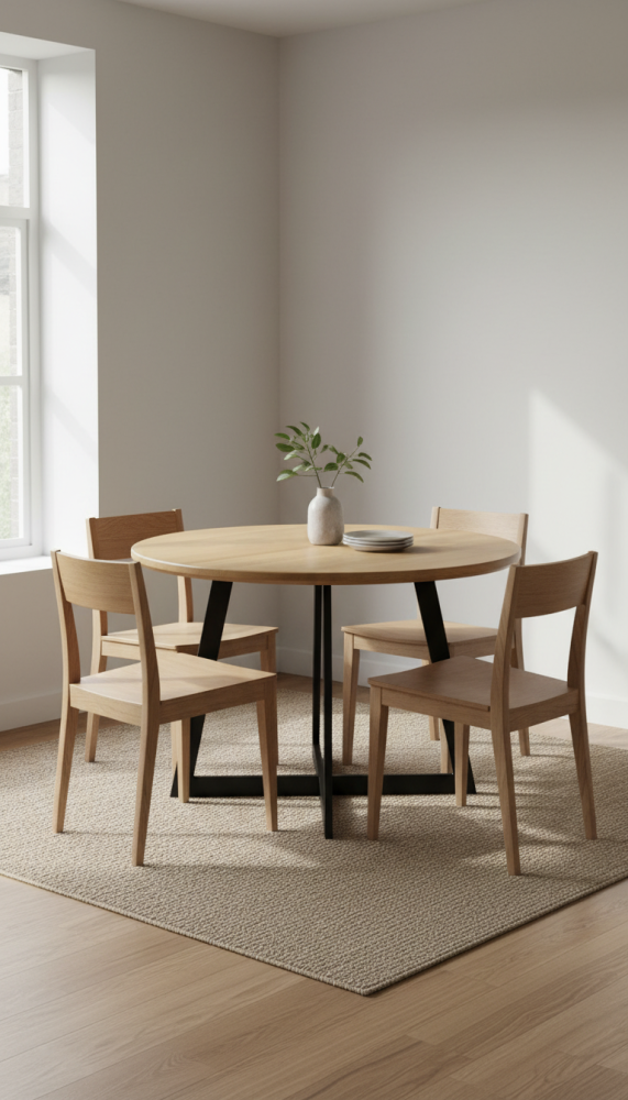 Kulatý jídelní stůl Rondo II s masivní dubovou deskou - Průměr stolové desky: 1100 mm