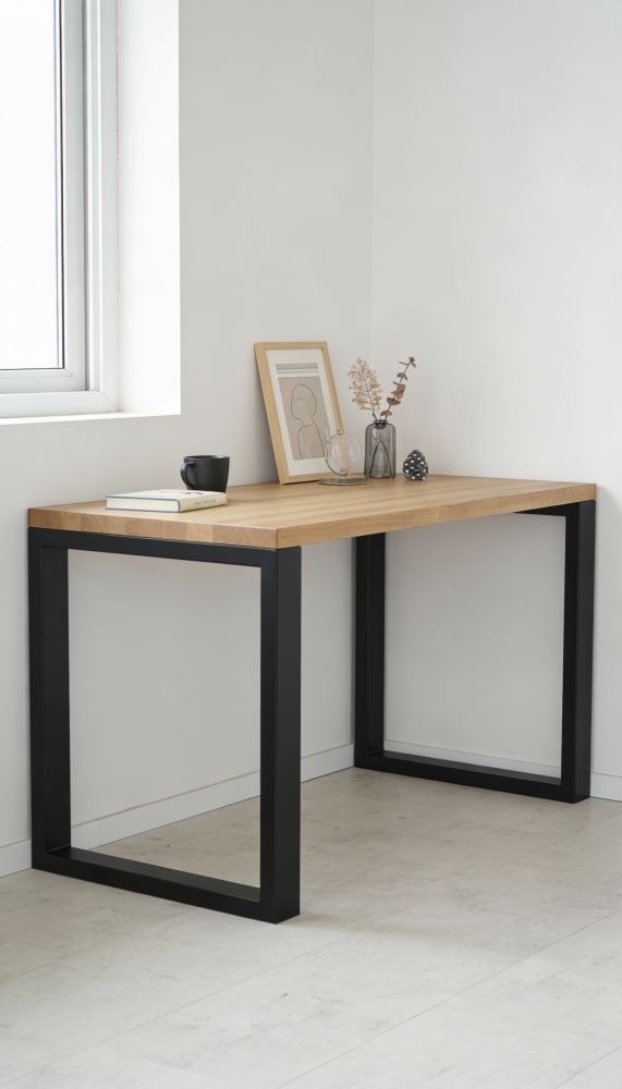 Jídelní či pracovní stůl bez kompromisů. Špičkové materiály, dubová masivní deska a kovová konstrukce zajišťují nadčasovost výrobku a také jeho skvělé vlastnosti. Dřevěný masiv z dubu je ošetřen špičkovými voskovými oleji, které jsou šetrné k životnímu prostředí, vysoce odolné a jsou určené pro přímý styk s potravinami. Porvch kovu je opatřen černou matnou barvou s jemnou strukturou pomocí moderní technologie v práškové lakovně.
