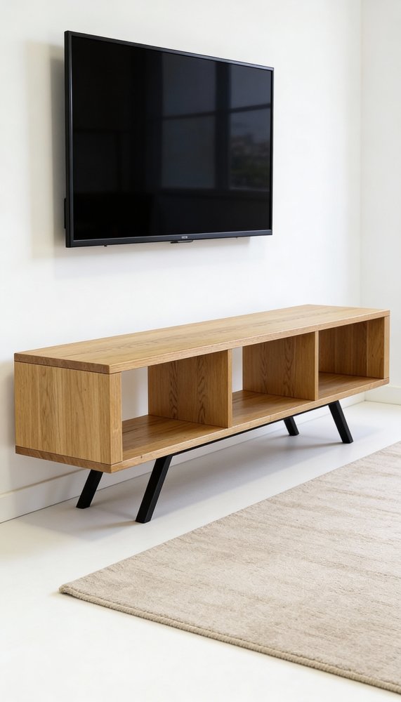 Televizní stolek Alfa je zhotoven z kvalitní oceli a masivního dubového dřeva. Nadčasová kombinace se hodí do každého interiéru. TV stolek se skvěle doplňuje s ostatními produkty značky Steelo.